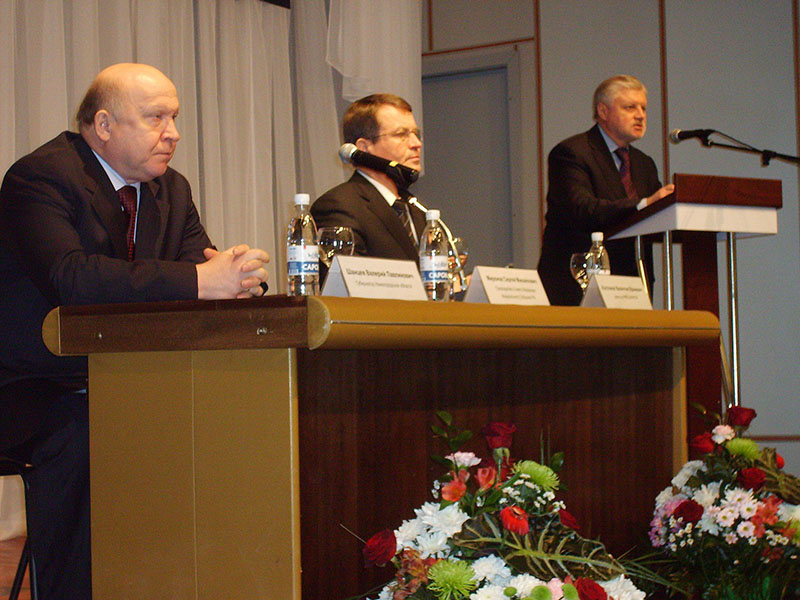 Визит в Саров завершился в Доме ученых, в зале которого присутствовали представители местного самоуправления, ученые и общественность.